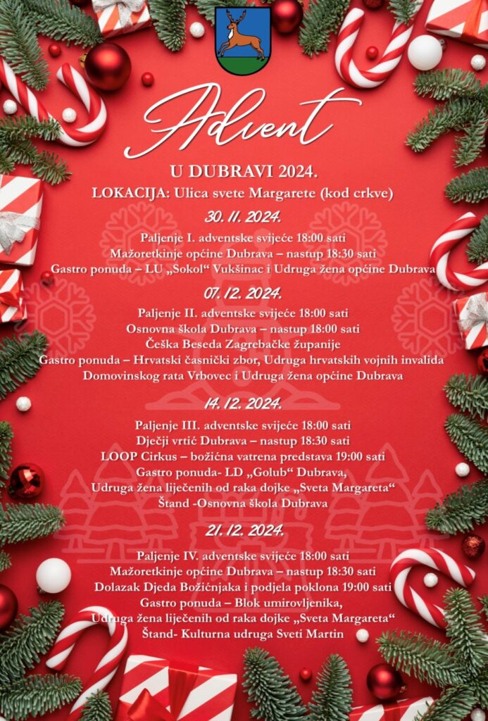 Paljenjem prve adventske svijeće započeo je Advent u Općini Dubrava . Miris fritula, kuhanog vina i čaja širio se nadaleko a nasmijana lica i srdačna dobrodošlica svakog su dočekala.